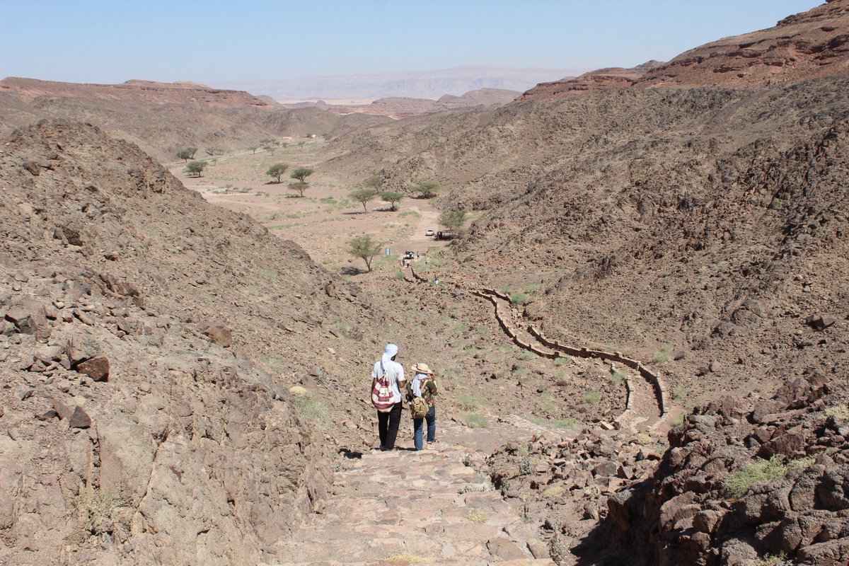 لازم يكون معاك دليل بدوي وأنت طالع. رغم وجود لوحات ارشادية لكن صدقني سهل تتوه.
