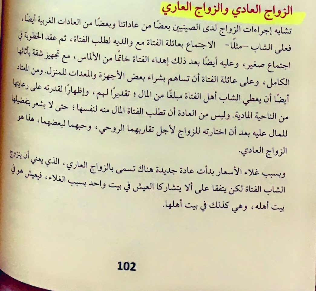 “للزوجة الشنغهانية صفات تختلف عن باقي الصينيات ،منها قوة الشخصية بشكل يفوق غيرها من الصينيات في المناطق الأخرى، وقد ذكرت لي إحدى الصينيات أن من أسباب ذلك تعرض مدينة شنغهاي للاستعمار ، وكان من نتائج ذلك اختلاط نسائهم بالنساء الفرنسيات والأجنبيات واكتساب القوة منهن” 🖋أمجاد المزيد