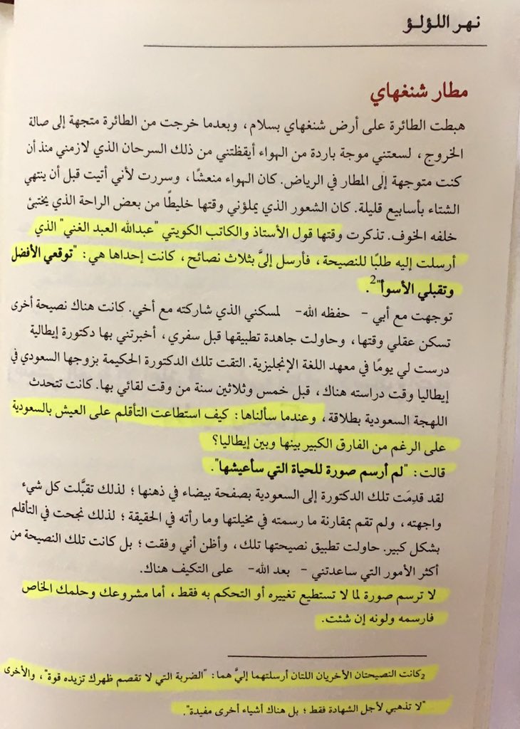 “الحياة أكبر مدرسة قد تعلمك الكثير من الحكم والدروس الإنسانية ،بشرط أن تفتح لها قلبك ، وترخي لها سمعك ، وأن ترغب حقًا في أن تتعلم وأن تتغير للأفضل ، اقرأ كثيرًا في كل مجال ، وصاحب أشخاصًا من ثقافات ودول أخرى؛ لتتوسع مداركك ، ويزداد فهمك للغير”