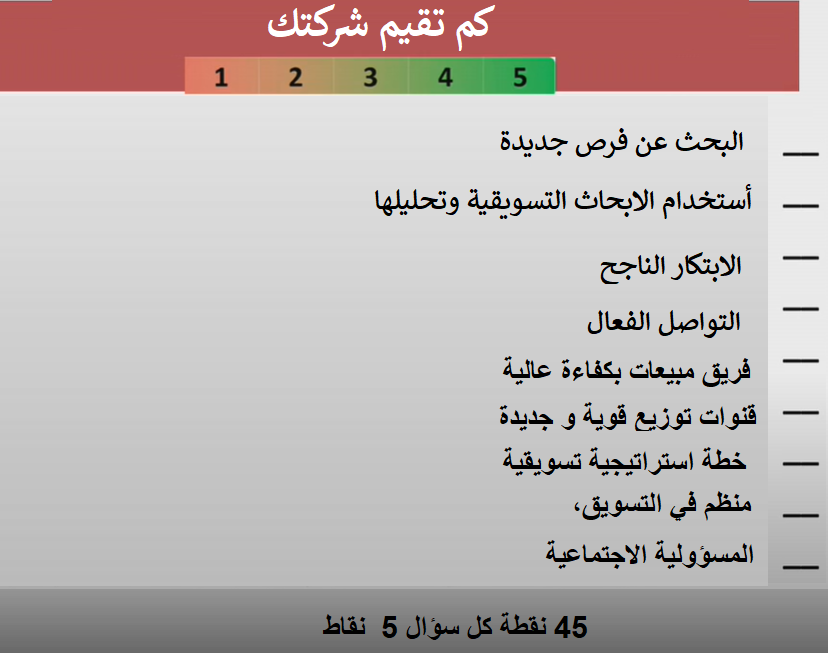 7.هل لديك خطة استراتيجية تسويقية واضحة وجيدة كم تقيمها من 5