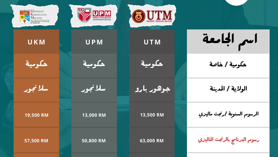 بعض الجامعات الحكومية الماليزية الموصى بها للدراسة بكالوريوس الإدارة