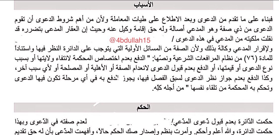 سأتطرد أولاً من جانبٍ قضائي قبل أن استرسل في رأيي الشخصي حول هذه القضية، كما تعلمون شرط الصفة شرط شكلي يلزم الاستقصاء عنه في كافة الدعاوى، وقد ذكر نظام المرافعات الشرعية ذلك الشرط ومن قبله فقهاء الشريعة، ولكن جانب الصفة في هذه القضية محل جدل والأحكام القضائية تفاوتت فيه