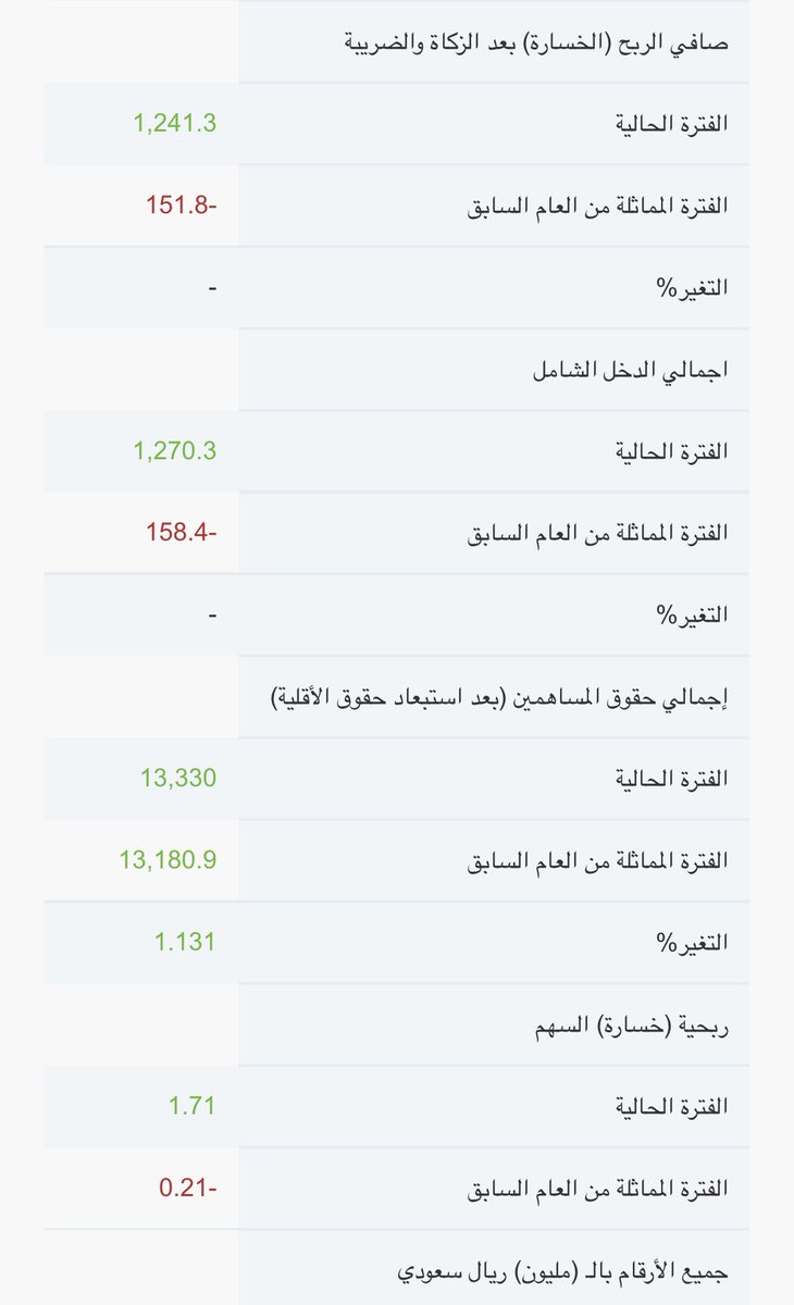 الربح الصافي لشركة #سبكيم بالنصف الاول= 1,241.3 مليون
