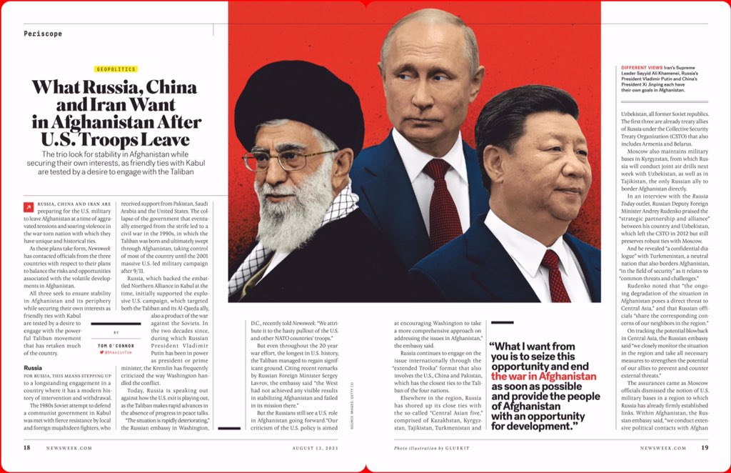نشرت مجلة نيوزويك تحقيقا اتصلت فيه بمسؤولين من البلدان الثلاثة لبيان خططهم لموازنة المخاطر والفرص المرتبطة بالتطورات المتقلبة في أفغانستان.