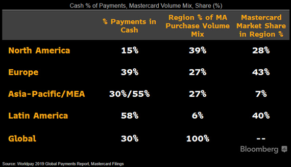*توسع ونمو في مناطق خارج الولايات المتحدة ، بالرغم من أن ماسترد كارد تتعامل مع كثير من البنوك عالميا في مختلف القارات ، إلا أن فرص التوسع الخارجية لا زالت كبيرة ، وذلك لوجود بعض الأسواق التي لا تتعامل مع ماستر كارد إلى الآن مثل الصين.