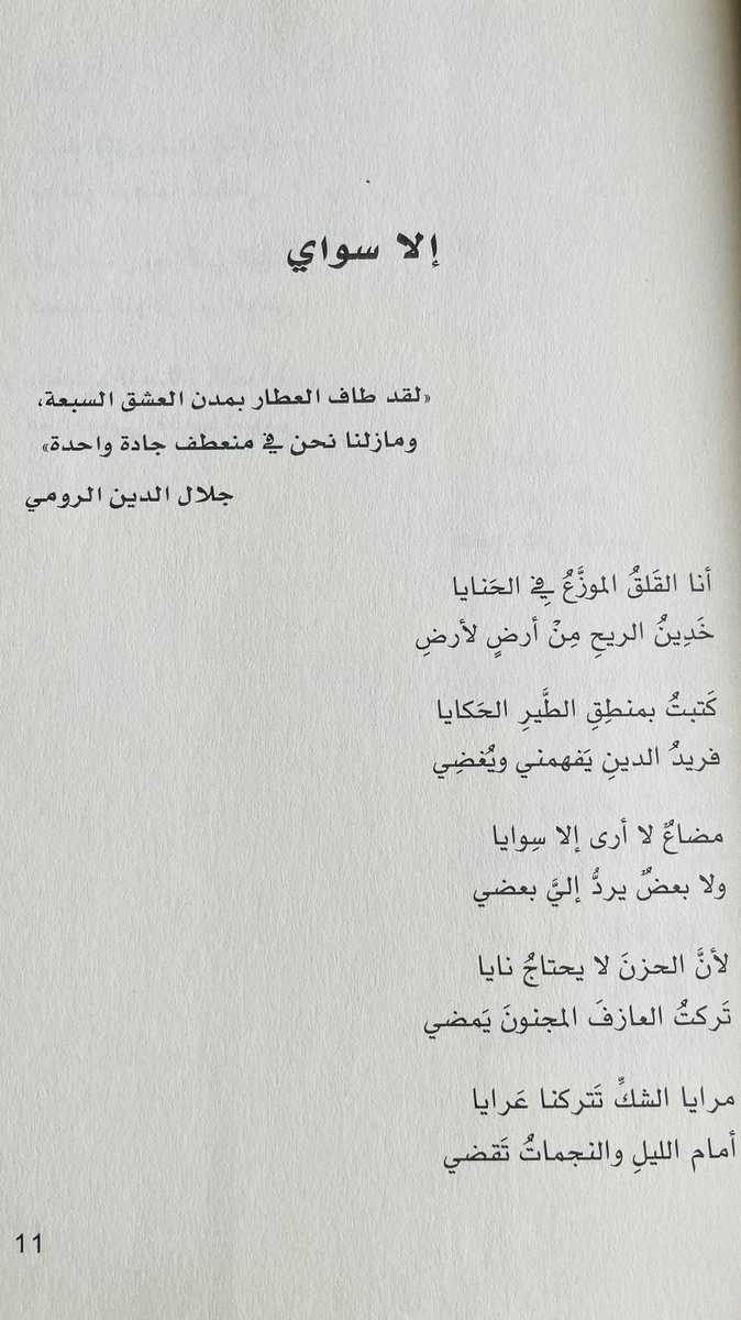 رويّ كولاج شعري: ديوان الشاعر الجميل عبداللطيف بن يوسف @youlat85 ، من أرق وأعذب الدواوين الشعرية في زمننا هذا، والبديع في هذا الديوان أن كل قصيدة يسبقها استهلال جميل يأخذ القارئ نحو أعمق نقطة في القصيدة، والغوص في أغوارها، ناهيك عن المواويل البديعة التي تتخلل صفحات الديوان..