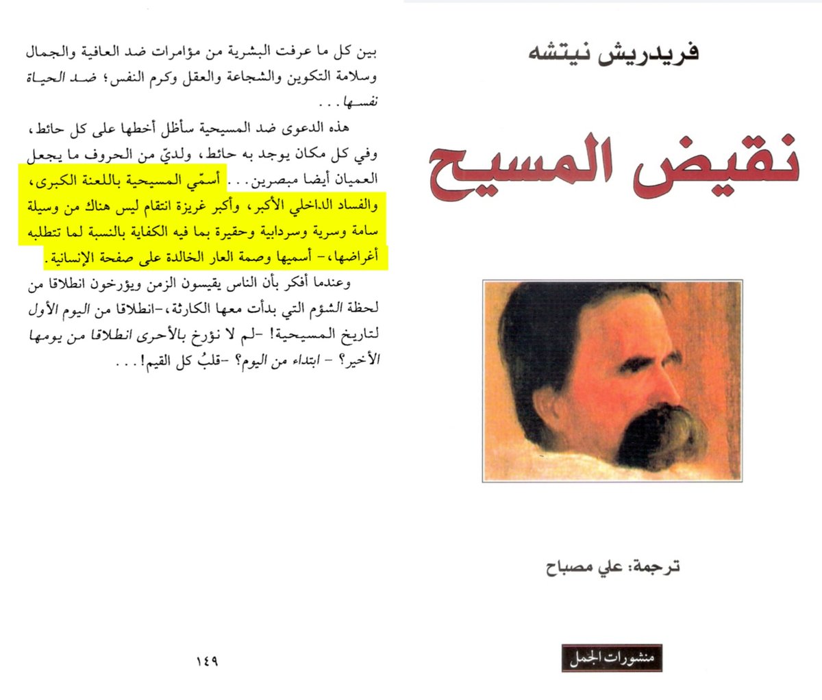 وهنا يصف المسيحية باللعنة الكبرى والفساد الداخلي الأكبر ،وأكبر غريزة انتقام وأكبر وصمة عار عرفتها البشرية!