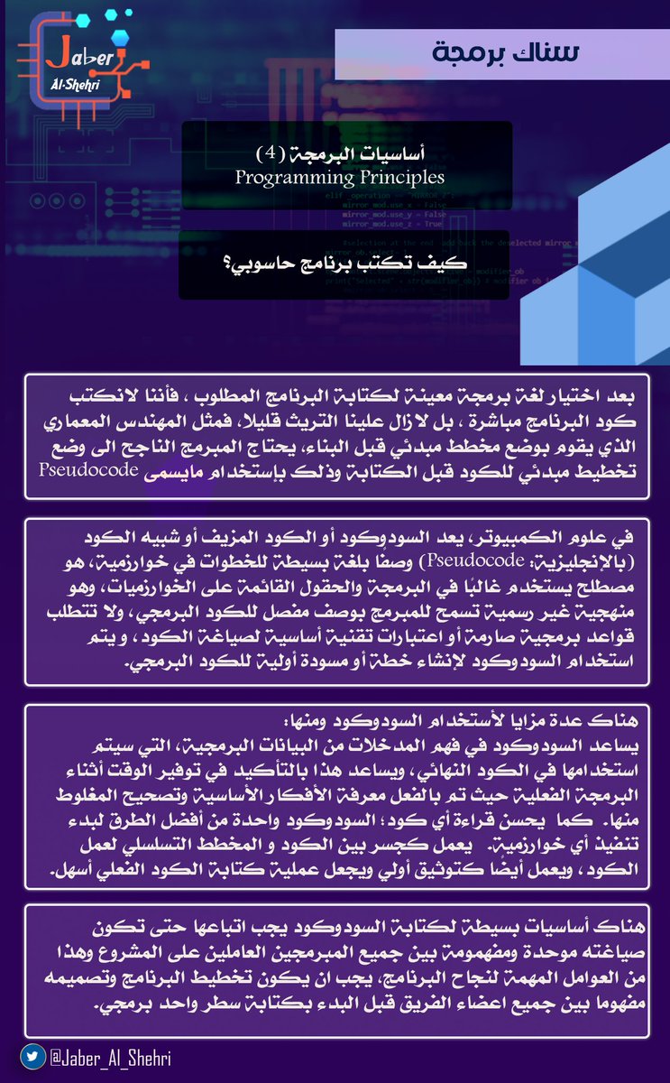 إذا نال المحتوى اعجابك فأرجو ان تسعدني باللايك ومشاركة التغريدة مع المبتدئين والمبتدئات في مجال البرمجة. ستعجبهم هذه السلسلة التثقيفية كثيرا بحول الله