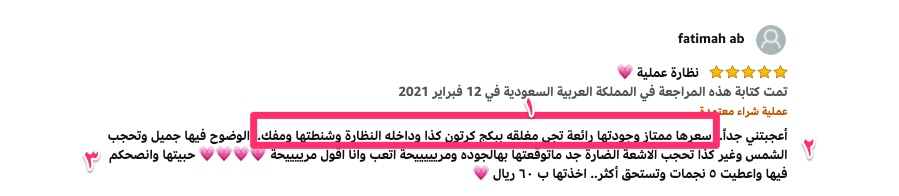 ستقوم بهذه العميلة لكل منتج من منتجاتك بناء على ٢٠-٣٠ تقييم عشان تقدر تحصد أكبر كمية معلومات مهمة. بعدها تقدر تبدأ باستخدم الجدول السابق في بناء وصف بهذه الهيكلة: