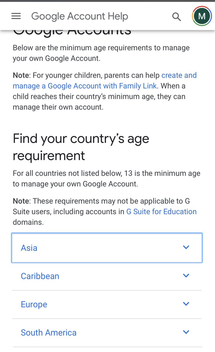 هناك قائمة قليلة بالدول التي حددت العمر الادنى الذي تلتزم به جوجل. المانيا مثلا حددت ١٦ سنة وفرنسا ١٥ !