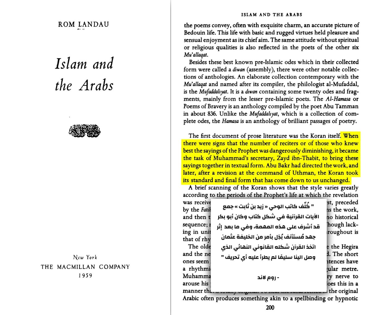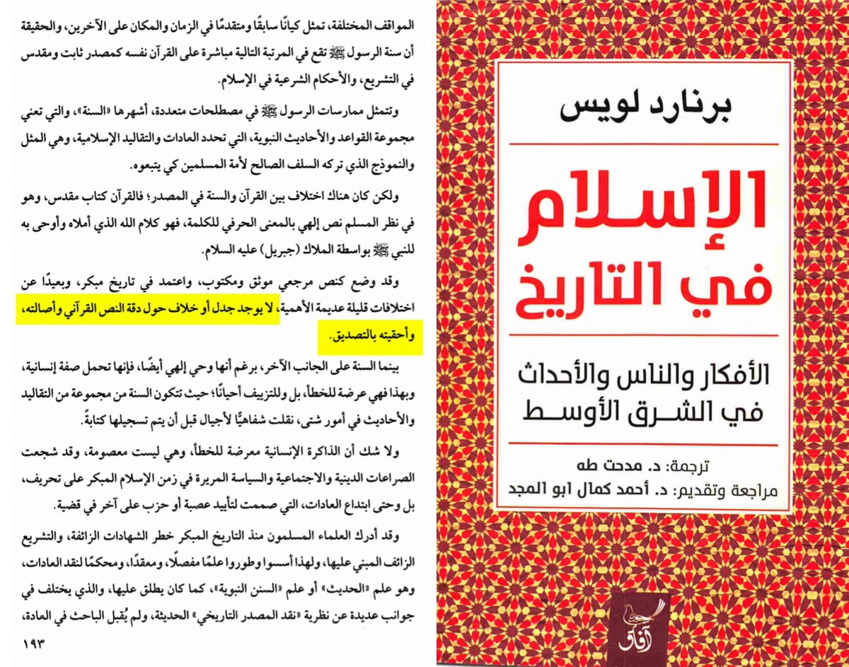 " القرآن اليوم هو الكتاب المقدس الوحيد الذي لا توجد فيه أي تغييرات جديرة بالذكر "