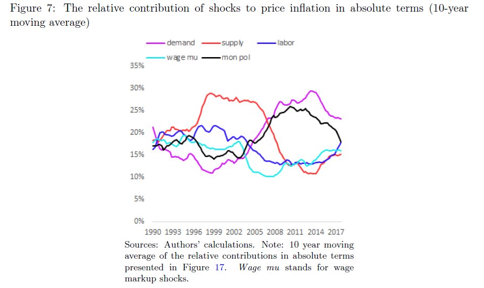 7. وهذا يفسر جزئيا لماذا كانت العلاقة ضعيفة من 1997 إلى 2007 حيث أن صدمات العرض كانت هي السائدة. ولكن هذا النموذج التحليلي لم يستطع أن يفسر استمرار ضعف العلاقة بعد 2007 مع ارتفاع صدمات الطلب.