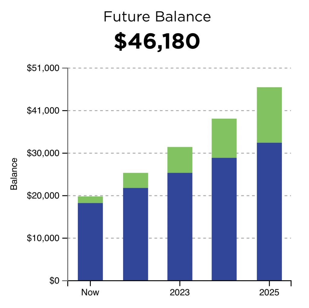 لنفترض بعد 5 اعوام اصبح راتب الفرد 6,000 وبأخذ نفس النسبة 5% =300 شهريا
