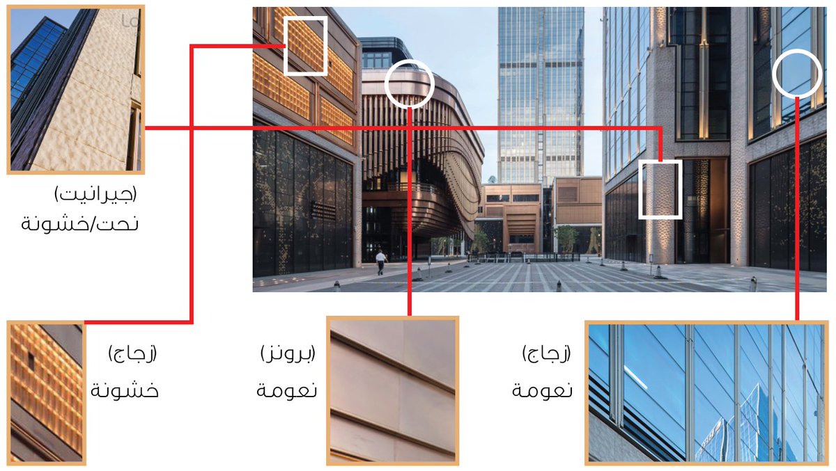تعامل المصمم مع مستويات مختلفة في التحكم بالإضاءة الطبيعية، ففي بعض الفراغات حرص على إدخال أكبر قدر من الإضاءة بينما حجبها تماماً عن فراغات أخرى طبقاً لوظيفة الفراغ، بالإضافة إلى فراغات تتغير فيها الإضاءة بطريقة ديناميكية مشوقة.