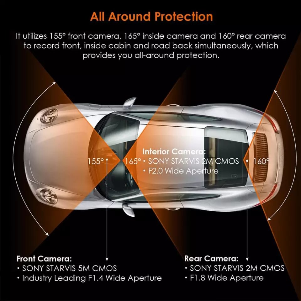 كاميرا أمامية 4K+ داخلية1080p + خلفية 1080p
