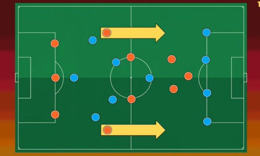 - دليل ذلك هو فيرتوت الذي احرز 10 اهداف وهذه هي المرة الاولى له بمسيرته التي يحرز فيها هذا العدد .. - ايضا عملية إيصال الكرة للمهاجم قد تكون اما عبر : 1. انطلاقة عنترية من لاعب وسط مراوغ (مثل ندومبيلي ) او زانيلو في روما .. 2. تمرير سريع بيني للاعبي الوسط والاجنحة ..