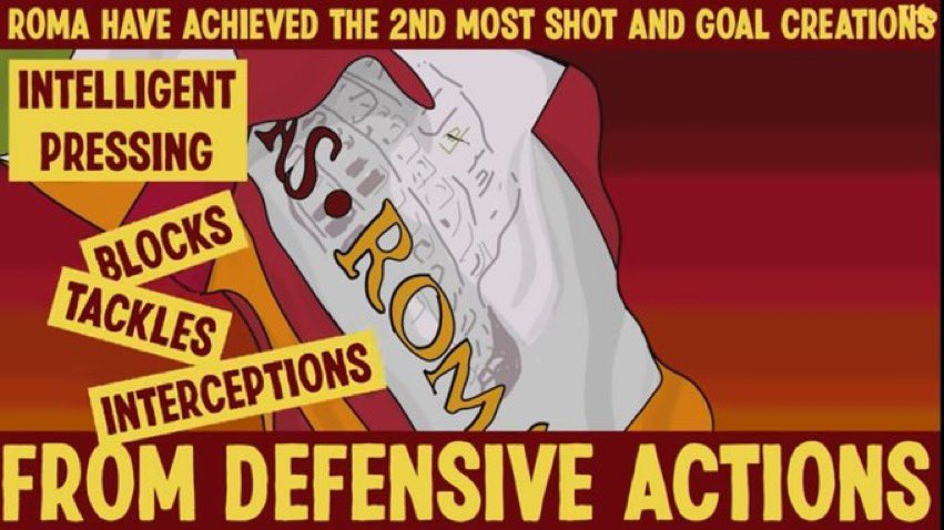 - بالمقابل .. جعل هذا الاسلوب روما يكون ثاني اكثر فريق يسدد ويهجم من وضعية دفاعية .. - وهذا يبين لك حجم استفادة فريق فونسيكا من عملية ضغطهم على حامل الكرة من الخصم ومدى إدراكهم لما سيقومون به بعد ذلك ..