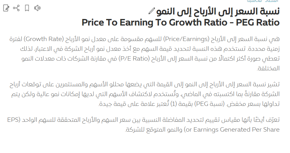 - مكرر الربحية / النمو PEG