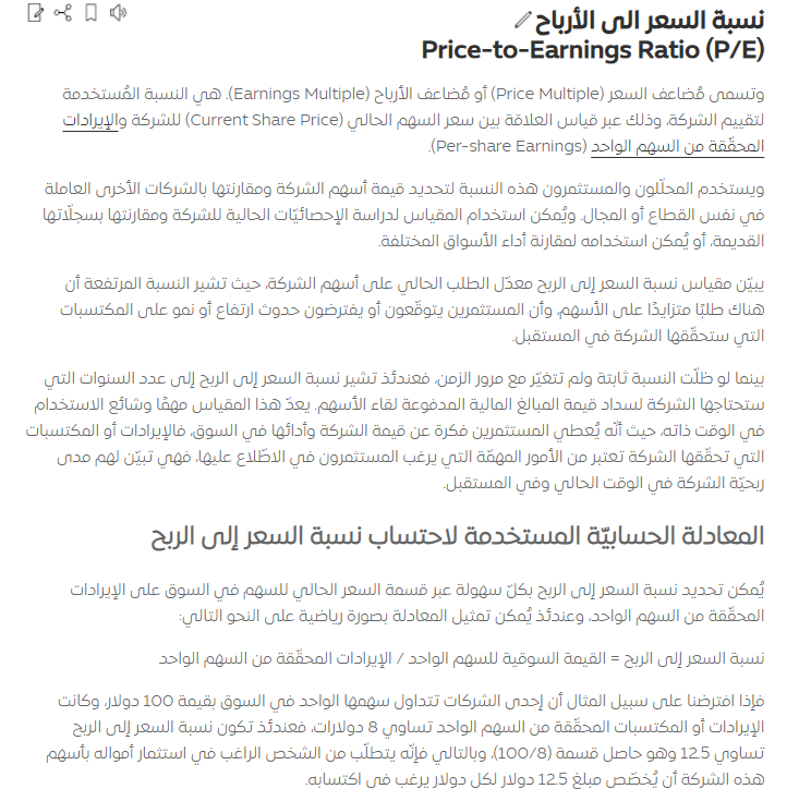 - مكرر الربحية لاخر 12 شهر Trailing P/E