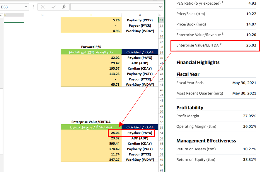 - قيمة المنشأة / الارباح قبل الضرائب الفوائد الاستهلاك