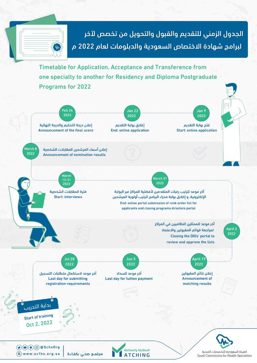 أعلنت هيئة التخصصات الصحية عن الجدول الزمني للتقديم على الماتش القادم #matching2022 ✅