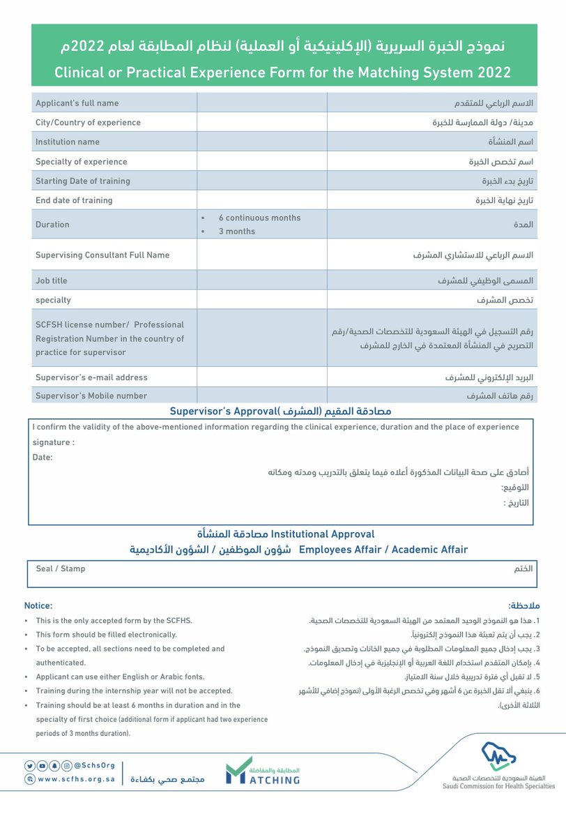 بإمكانكم إرفاق نسخه من "النموذج المعتمد" للتقديم على الـ #matching2022 عبر الرابط أدناه👇🏼