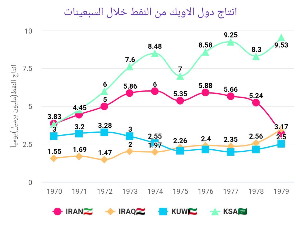 ✅كم صدّر العراق/ايران من النفط في السبعينات والثمانينات؟