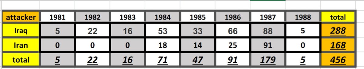 ✅الهجمات العراقية كانت الاكثر بحوالي(65٪)والايرانية بحوالي(35٪)