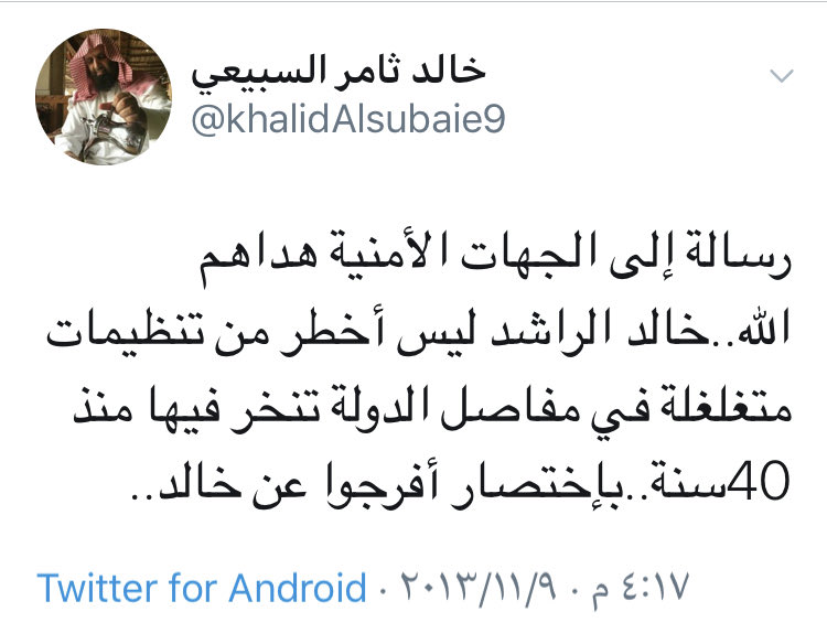 تأمل في تغريدات من يطالب باطلاق سراح الارهابي خالد الراشد!!!