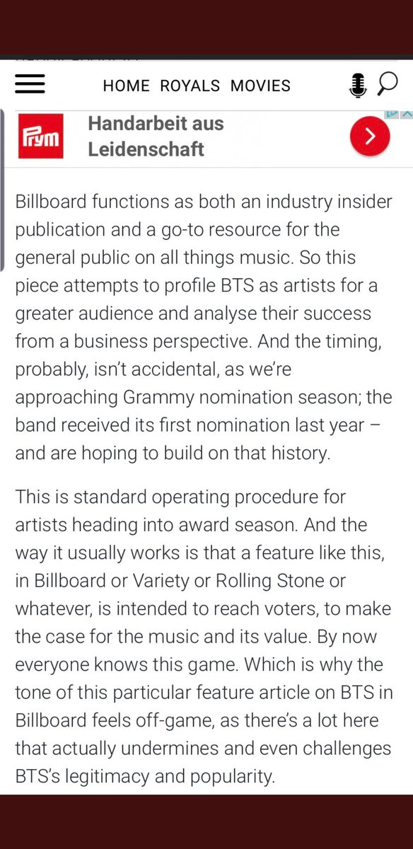 يلي بقوله هو على حسب قول الارميز الامريكي انه البيلبورد من فترة يحاول ينزل مقالات تسيئ لسمعة BTS ولما عجز وما لقا شي ضدهم نزل مقال يتكلم عن انهم غشو في مخطط البيلبورد وشجع اشاعات الغش الموجهة ضدهم محاولة لتشويه سمعتهم امام لجنة القرامي وباقي اللجنات يلي ترشح الفنانين للجوائز !!