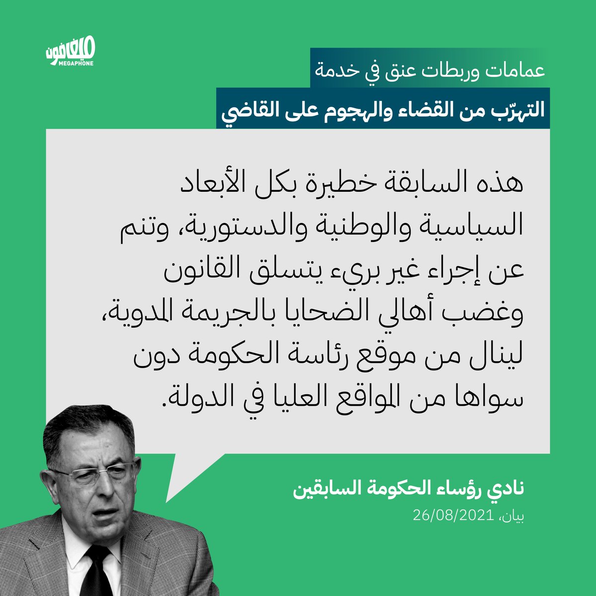 ما إن أصدر المحقّق العدلي القاضي #طارق_بيطار مذكّرة إحضار بحقّ رئيس الحكومة #حسّان_دياب، حتّى توالت التصريحات المدافعة عن موقع رئاسة الحكومة، وقد استغلّت مرجعيّاتٍ دينية وكتل نيابيّة ونوادٍ حكوميّة هذه الخطوة لشنّ موجة تحريض جديدة ضدّ بيطار -