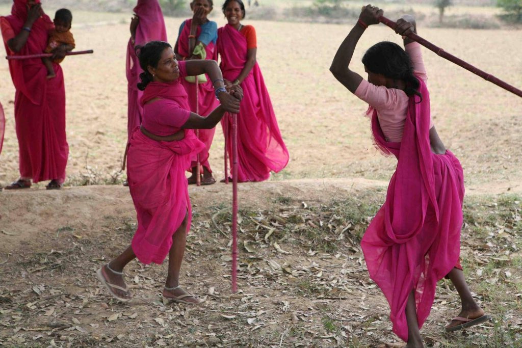 بدأت الجماعة نشاطها في "أتر بداش"، وهى أكثر مناطق الهند فقرًا واكتظاظًا بالسكان وتعنيفًا للنساء، حيث عمدت إلى مراقبة الوضع المجتمعي والقيام بدور العدالة البديلة فتنتقم للنساء المغتصبات عبر تتبع المغتصبين وتأديبهم بالعصي، وتمنع زواج القاصرات، وتتصدى للأزواج الذين يعنفون زوجاتهم.