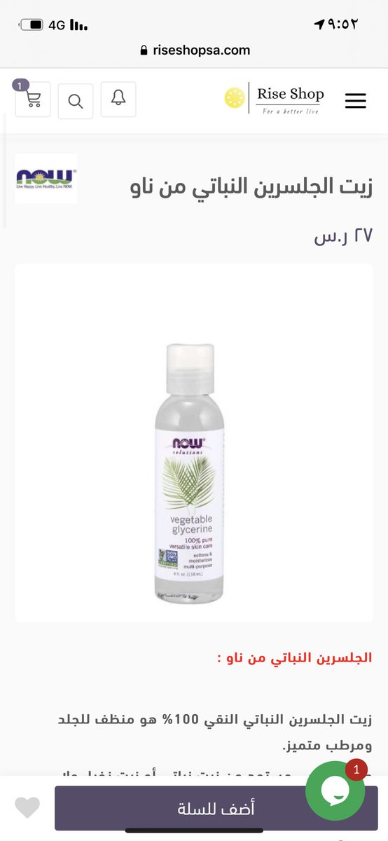 زيت الجليسرين من now يفتح ويرطب ويستخدم للجسم وللشعر فوائده اكثر من زيت اللوز اخلطه مع اي لوشن ولاحظت فتح لي المفاصل والي حوالين الاظافر ممتازززز👌🏼