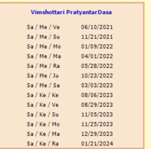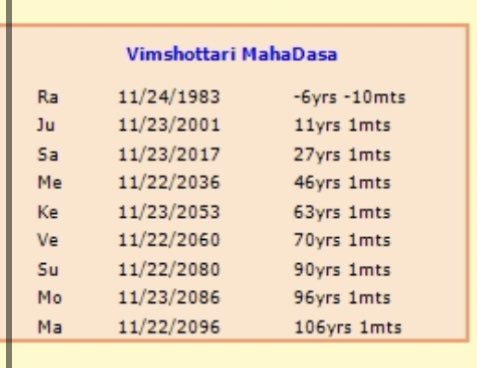 ناكشاترا يحكمها كوكب معين فإن هذا الكوكب هو حاكم أول فترة ماهاداشا فى حياة المولود وتتوالى الفترات فترة بعد فترة حتى نعود بشكل دائرى لنقطة البداية.