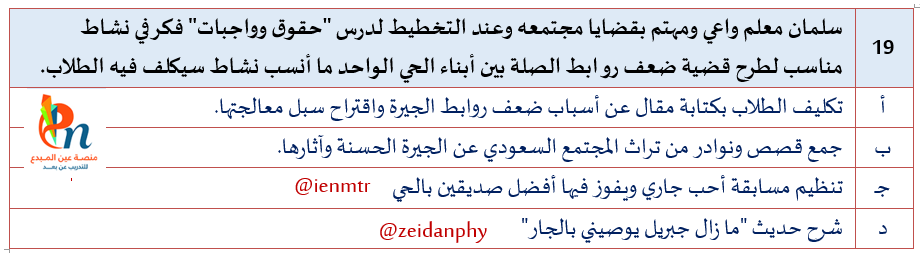 السؤال رقم 19 من التجميعات المؤكدة 100% لاختبار #الرخصة_المهنية القسم التربوي.