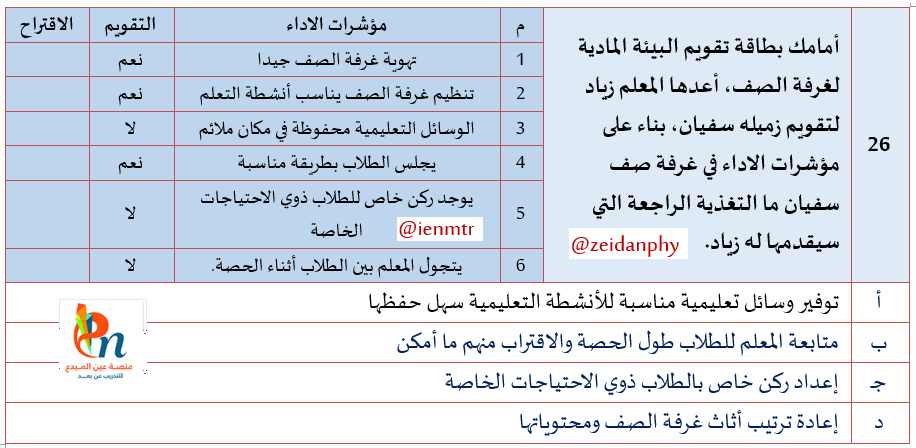 السؤال رقم 26 من التجميعات المؤكدة 100% لاختبار #الرخصة_المهنية القسم التربوي.