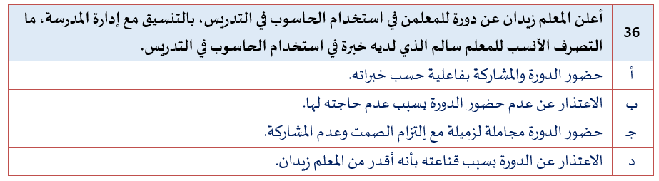 السؤال رقم 36 من التجميعات المؤكدة 100% لاختبار #الرخصة_المهنية القسم التربوي.