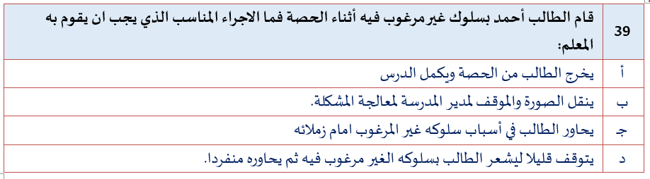 السؤال رقم 39 من التجميعات المؤكدة 100% لاختبار #الرخصة_المهنية القسم التربوي.