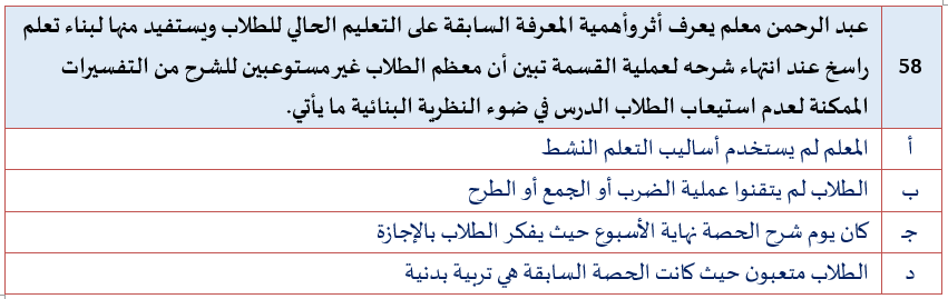 السؤال رقم 58 من التجميعات المؤكدة 100% لاختبار #الرخصة_المهنية القسم التربوي.
