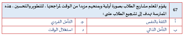 السؤال رقم 67 من التجميعات المؤكدة 100% لاختبار #الرخصة_المهنية القسم التربوي.