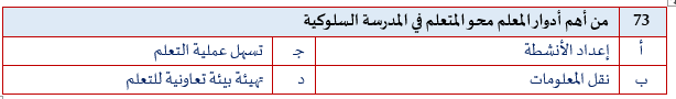 السؤال رقم 73 من التجميعات المؤكدة 100% لاختبار #الرخصة_المهنية القسم التربوي.