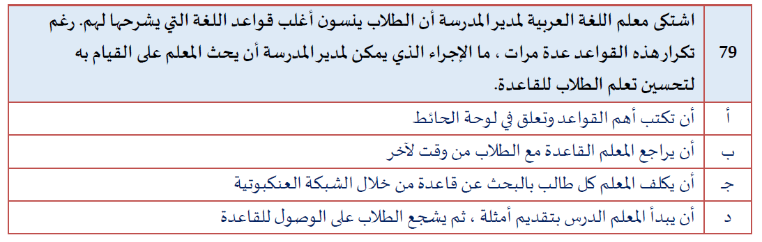 السؤال رقم 79 من التجميعات المؤكدة 100% لاختبار #الرخصة_المهنية القسم التربوي.