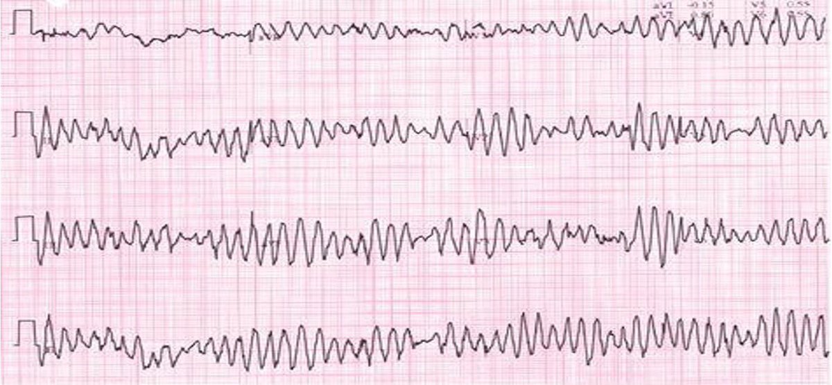 Treated as ventricular fibrillation High-energy unsynchronized shocks