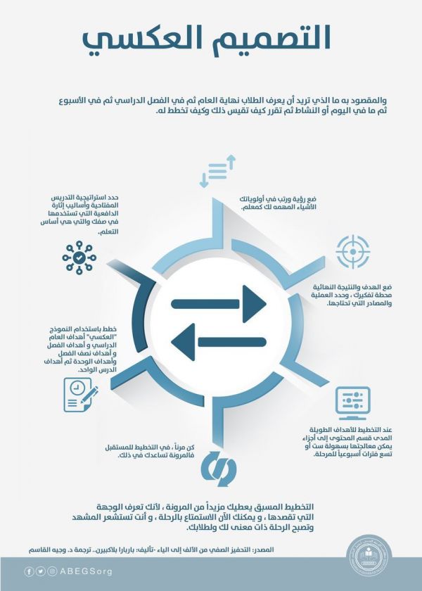٤- #التصميم_العكسي في #التعلم_الهجين أو #التعليم_المدمج وهو إجابة عن الأسئلة التالية: