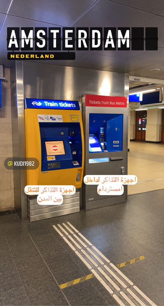 اولا / التنقل بين #أمستردام والمدن الأخرى يتم قطع التذاكر في الاجهزه الصفراء الموجوده في كل محطة