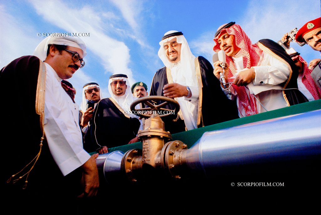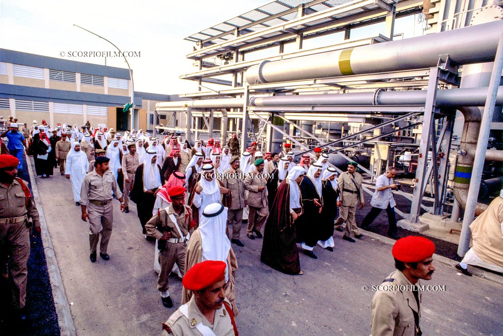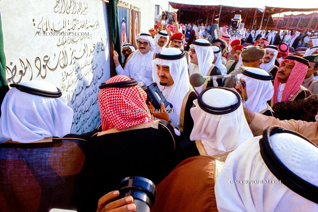 صورة جميلة للملك فهد رحمه الله (ولي العهد آنذاك) في تدشين مشروع المؤسسة العامة لتحلية المياه في جدة، في السبعينيات الميلادية.