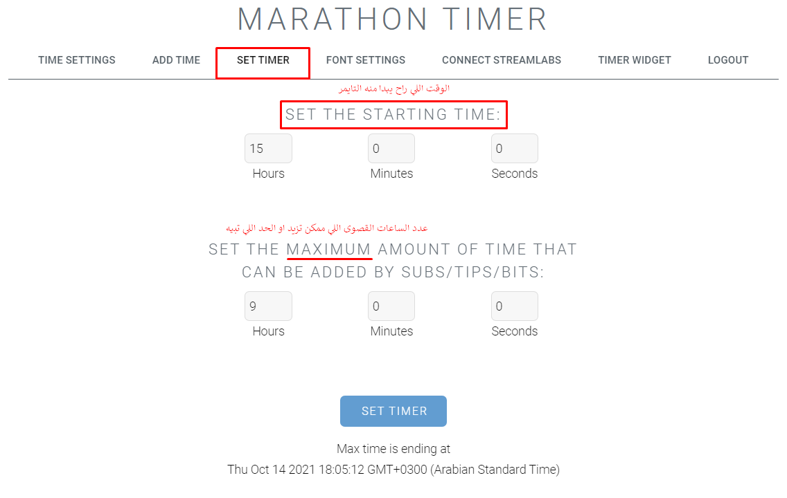 راح يطلب منك تدخل تربط حسابك بتويتش+تربط حسابك بستريم لابز+يقدملك رابط براوزر سورس تدخله في برنامج البث واللي راح يعرضلك عداد الوقت او التايمر في شاشة البث