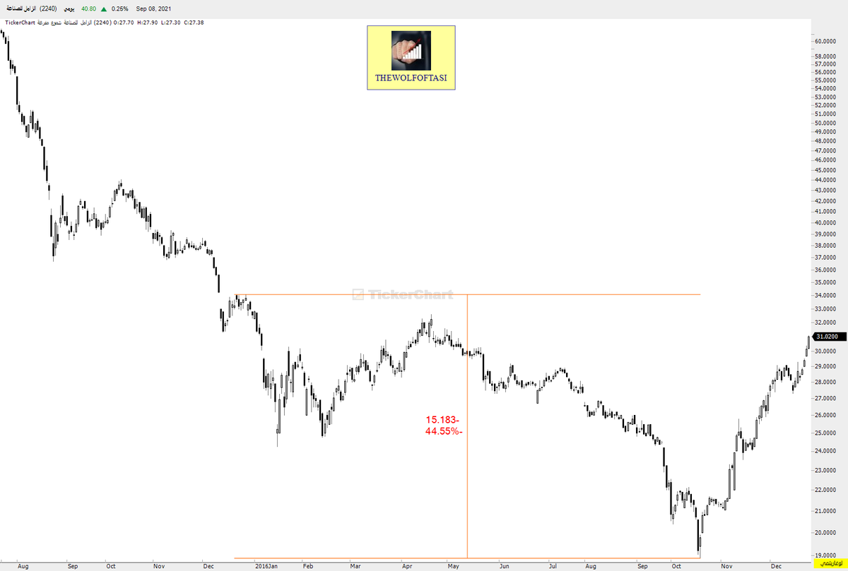 مثال ثاني على شركة محترمة وذات تاريخ في التوزيعات شركة #الزامل حيث أعلنت عن توزيعات 10% عن النصف الثاني من العام 2015م وبعدها هبط السهم من 34 ريال إلى 19 ريال يعني اللي أخذ ريال واحد خسر 15 ريال خلال سنة فقط !؟ ..