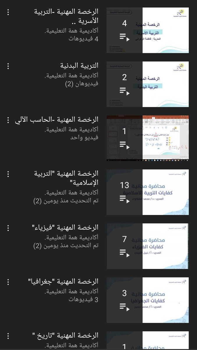 قناة "أكاديمية همة التعليمية باليوتيوب" ؛ تقدم محاضرات ودورات مجانية لمختلف تخصصات الرخصة المهنية
