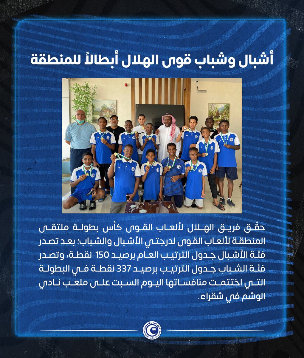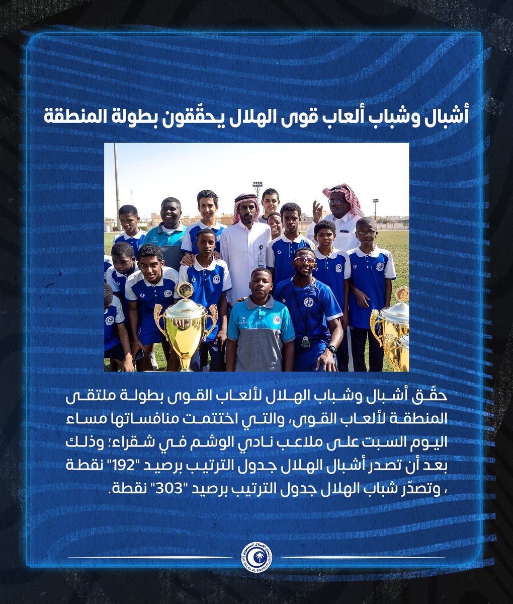 - حقق فريقي #الهلال لفئة البراعم والشباب في ألعاب القوى بطولة المنطقة الوسطى لاختراق الضاحية والتي أقيمت في المجمعة واختتمت منافساتها صباح اليوم السبت